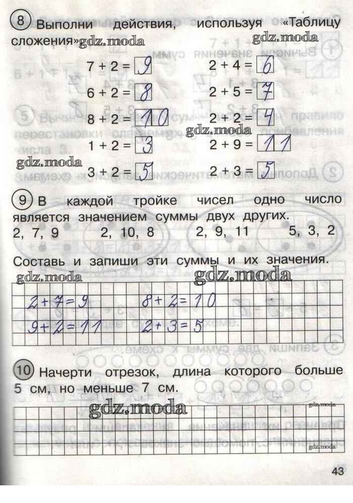 ГДЗ решение к заданию № 43 Математика 1 класс тетрадь для самостоятельной работы Захарова О.А. Академкнига 2016 Часть 1, Часть 2 бесплатно на гдз.мода!