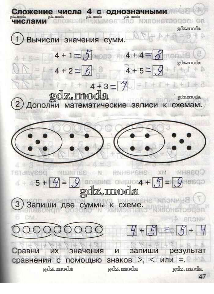 ГДЗ решение к заданию № 47 Математика 1 класс тетрадь для самостоятельной работы Захарова О.А. Академкнига 2016 Часть 1, Часть 2 бесплатно на гдз.мода!