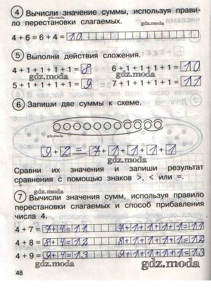 ГДЗ решение к заданию № 48 Математика 1 класс тетрадь для самостоятельной работы Захарова О.А. Академкнига 2016 Часть 1, Часть 2 бесплатно на гдз.мода!
