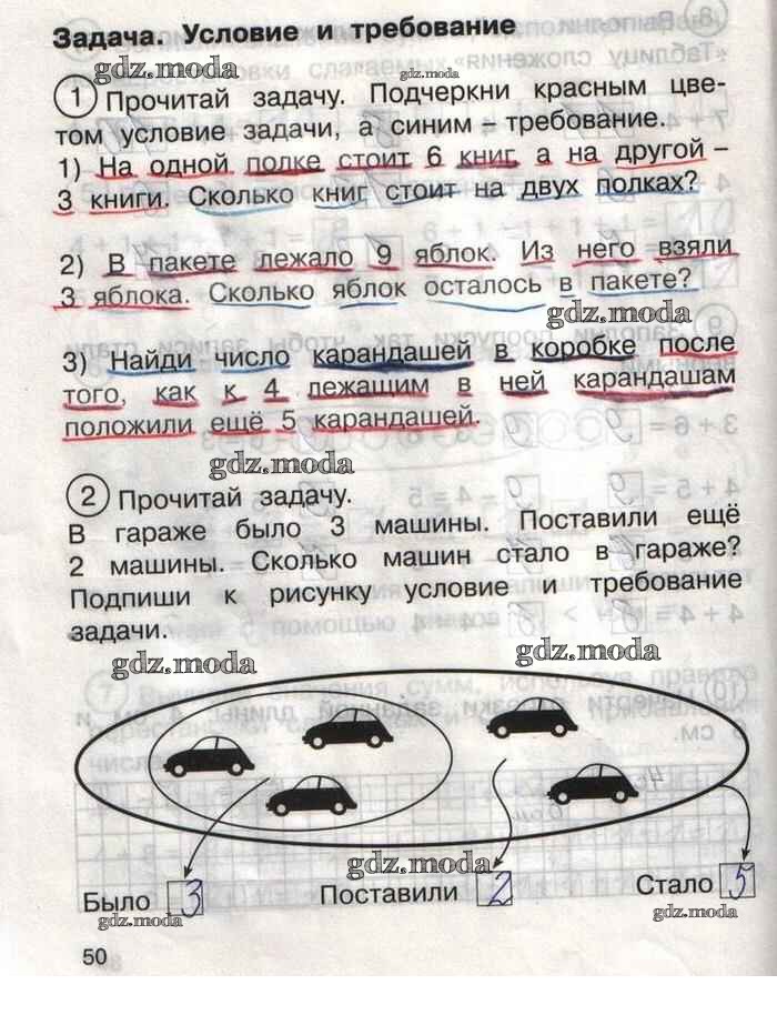 ГДЗ решение к заданию № 50 Математика 1 класс тетрадь для самостоятельной работы Захарова О.А. Академкнига 2016 Часть 1, Часть 2 бесплатно на гдз.мода!