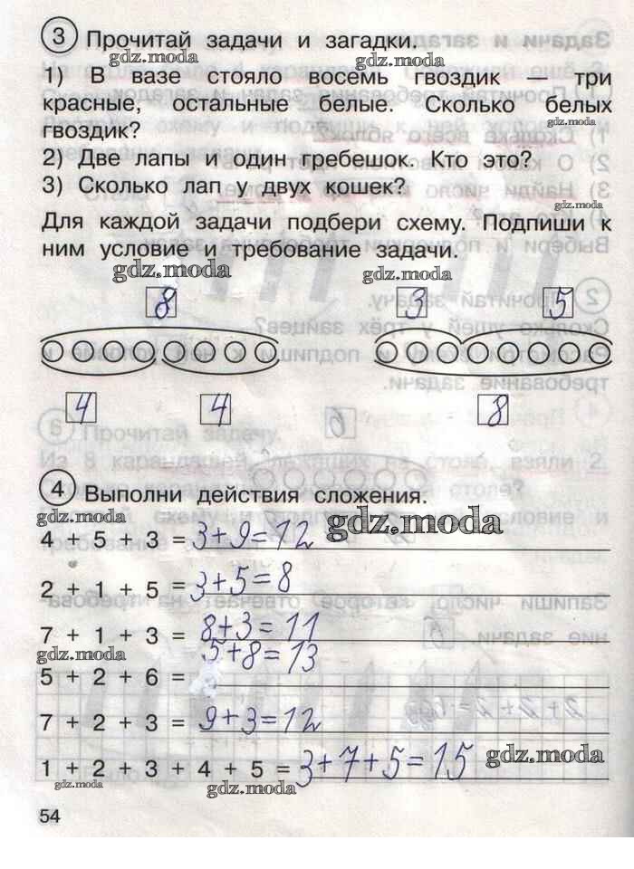 ГДЗ решение к заданию № 54 Математика 1 класс тетрадь для самостоятельной работы Захарова О.А. Академкнига 2016 Часть 1, Часть 2 бесплатно на гдз.мода!