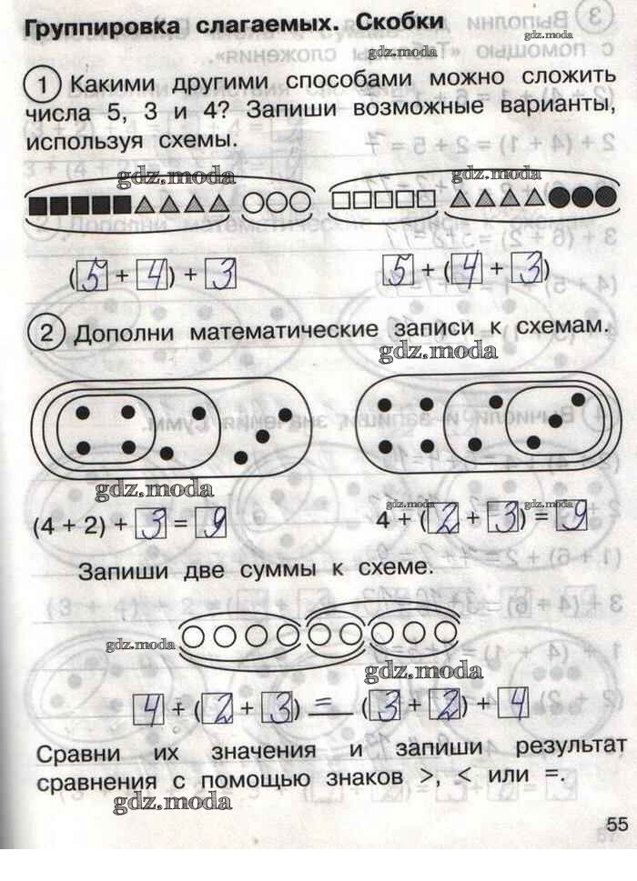 ГДЗ решение к заданию № 55 Математика 1 класс тетрадь для самостоятельной работы Захарова О.А. Академкнига 2016 Часть 1, Часть 2 бесплатно на гдз.мода!