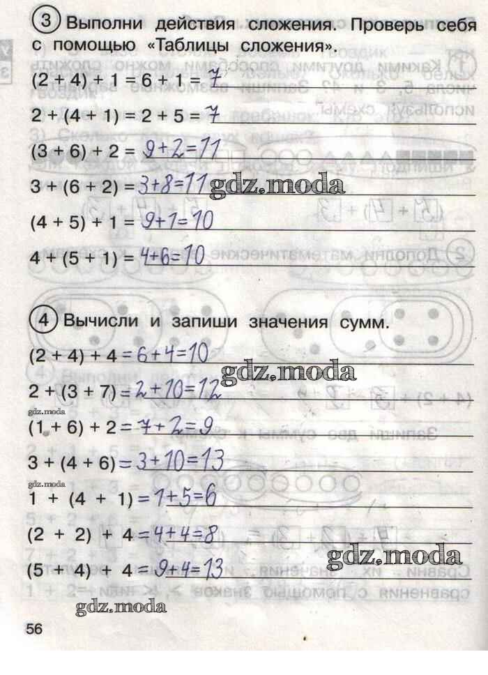 ГДЗ решение к заданию № 56 Математика 1 класс тетрадь для самостоятельной работы Захарова О.А. Академкнига 2016 Часть 1, Часть 2 бесплатно на гдз.мода!