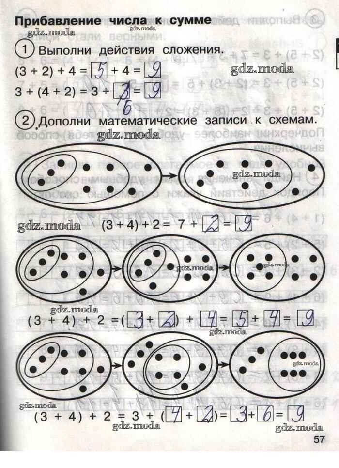 ГДЗ решение к заданию № 57 Математика 1 класс тетрадь для самостоятельной работы Захарова О.А. Академкнига 2016 Часть 1, Часть 2 бесплатно на гдз.мода!