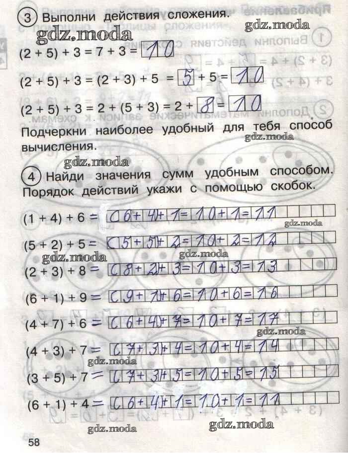 ГДЗ решение к заданию № 58 Математика 1 класс тетрадь для самостоятельной работы Захарова О.А. Академкнига 2016 Часть 1, Часть 2 бесплатно на гдз.мода!