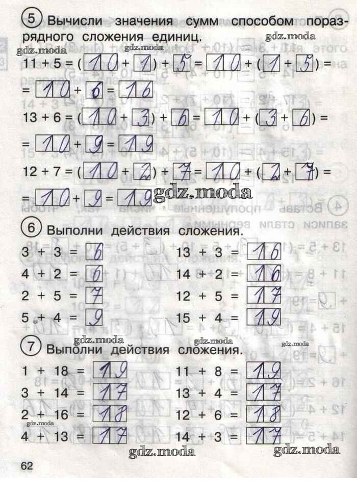 ГДЗ решение к заданию № 62 Математика 1 класс тетрадь для самостоятельной работы Захарова О.А. Академкнига 2016 Часть 1, Часть 2 бесплатно на гдз.мода!