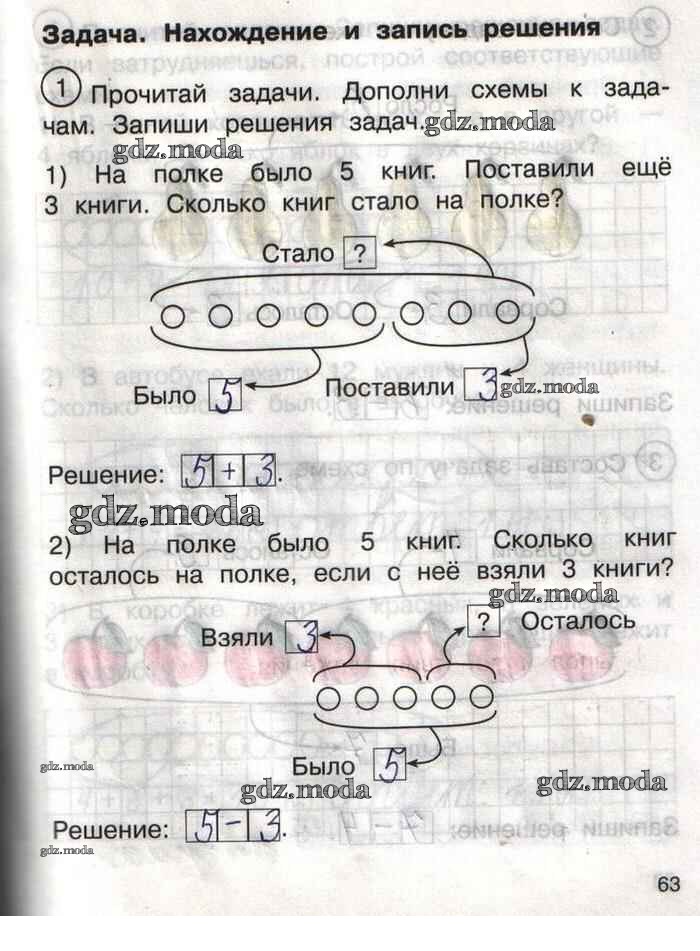 ГДЗ решение к заданию № 63 Математика 1 класс тетрадь для самостоятельной работы Захарова О.А. Академкнига 2016 Часть 1, Часть 2 бесплатно на гдз.мода!