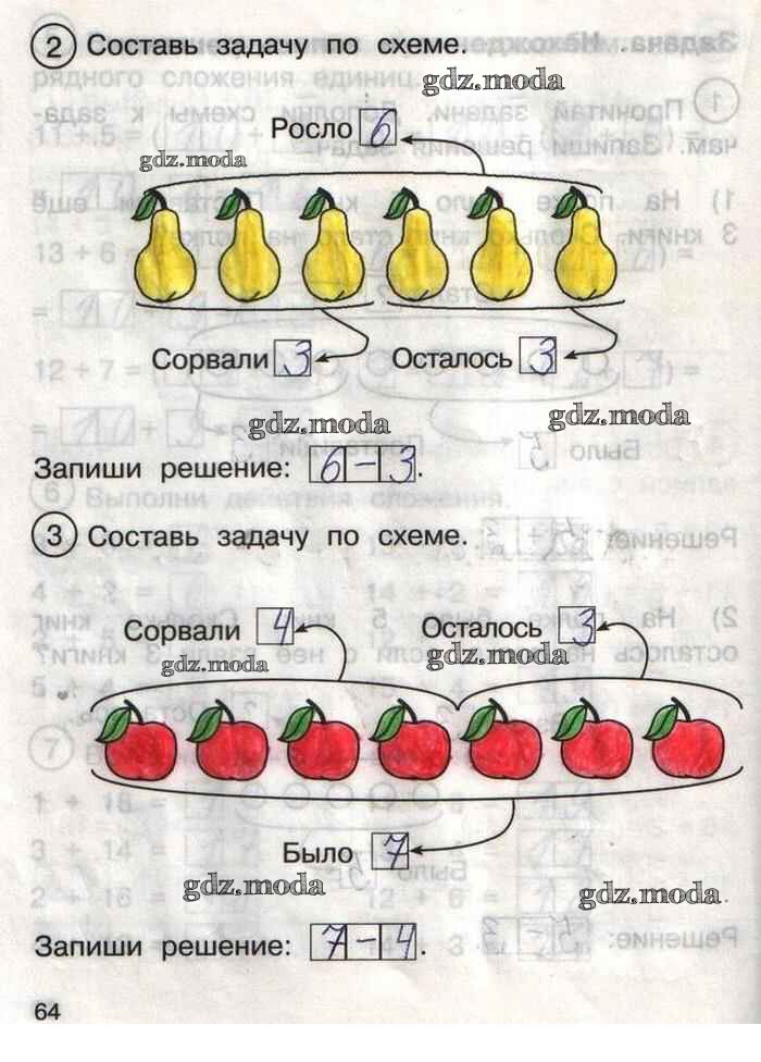 ГДЗ решение к заданию № 64 Математика 1 класс тетрадь для самостоятельной работы Захарова О.А. Академкнига 2016 Часть 1, Часть 2 бесплатно на гдз.мода!