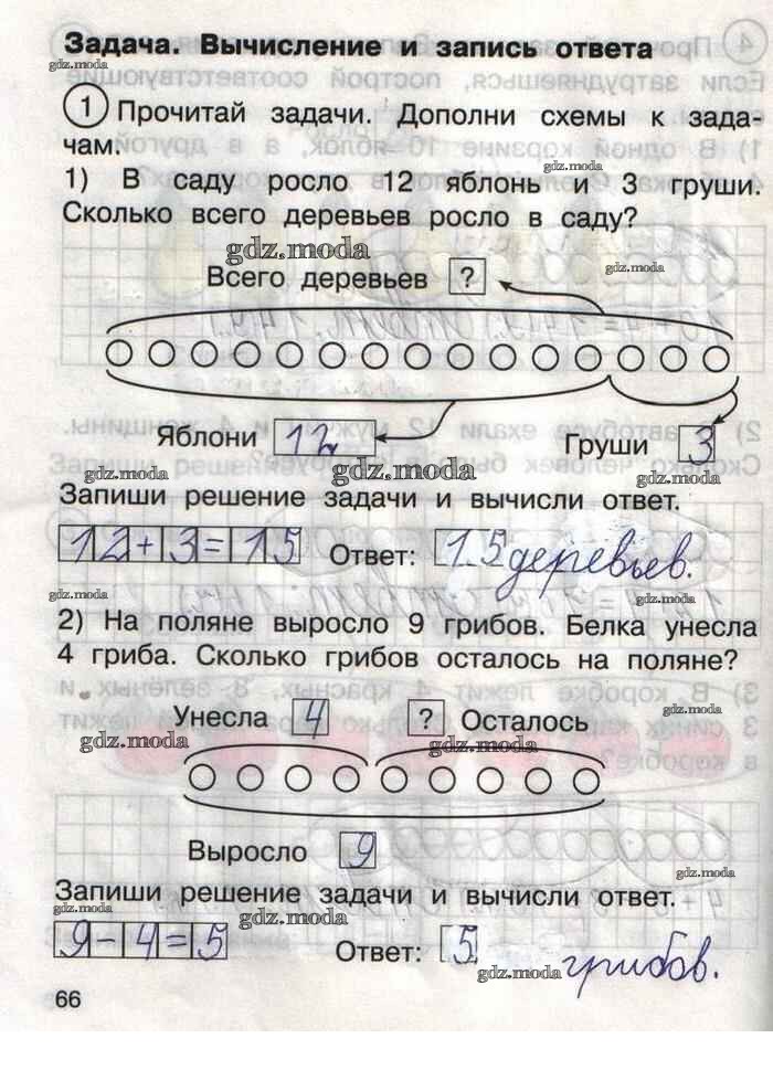 ГДЗ решение к заданию № 66 Математика 1 класс тетрадь для самостоятельной работы Захарова О.А. Академкнига 2016 Часть 1, Часть 2 бесплатно на гдз.мода!