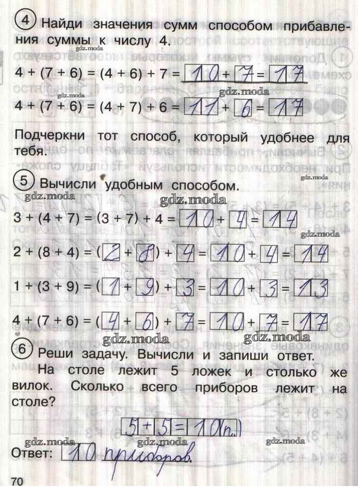 ГДЗ решение к заданию № 70 Математика 1 класс тетрадь для самостоятельной работы Захарова О.А. Академкнига 2016 Часть 1, Часть 2 бесплатно на гдз.мода!