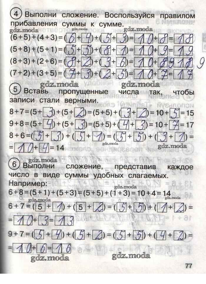 ГДЗ решение к заданию № 77 Математика 1 класс тетрадь для самостоятельной работы Захарова О.А. Академкнига 2016 Часть 1, Часть 2 бесплатно на гдз.мода!