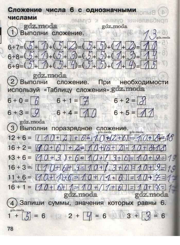 ГДЗ решение к заданию № 78 Математика 1 класс тетрадь для самостоятельной работы Захарова О.А. Академкнига 2016 Часть 1, Часть 2 бесплатно на гдз.мода!