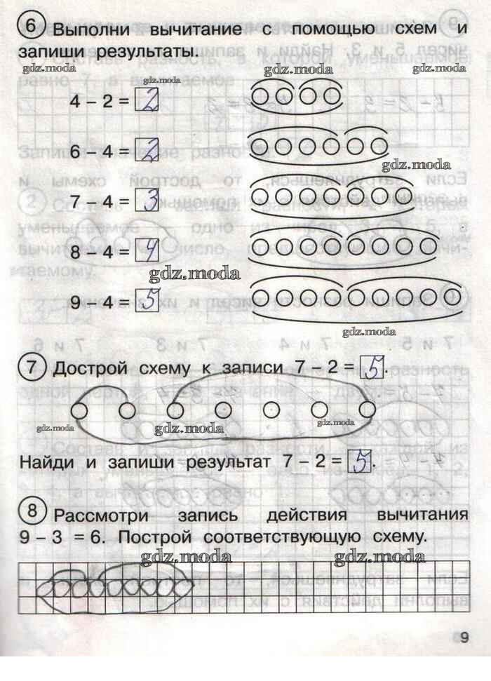 ГДЗ решение к заданию № 9 Математика 1 класс тетрадь для самостоятельной работы Захарова О.А. Академкнига 2016 Часть 1, Часть 2 бесплатно на гдз.мода!