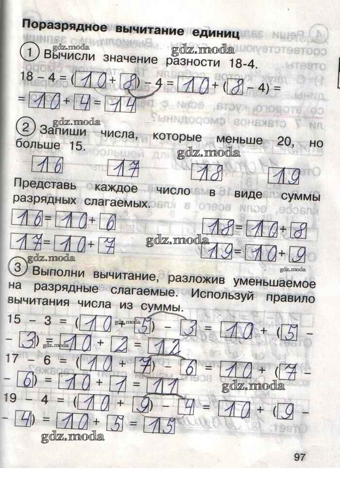 ГДЗ решение к заданию № 97 Математика 1 класс тетрадь для самостоятельной работы Захарова О.А. Академкнига 2016 Часть 1, Часть 2 бесплатно на гдз.мода!