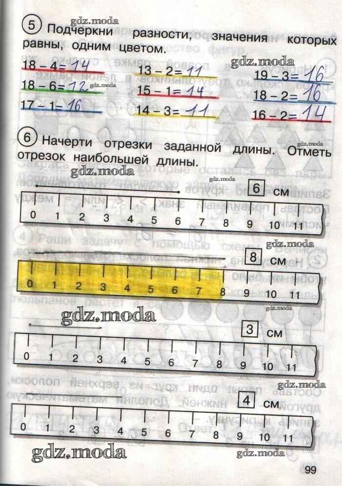 ГДЗ решение к заданию № 99 Математика 1 класс тетрадь для самостоятельной работы Захарова О.А. Академкнига 2016 Часть 1, Часть 2 бесплатно на гдз.мода!