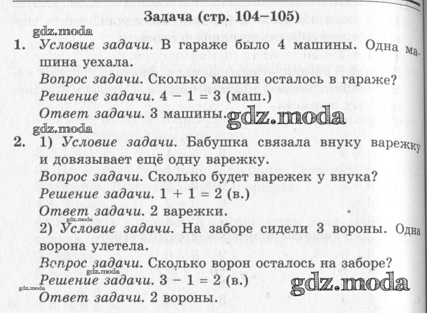 ОТВЕТ на задание № 104 Учебник по Математике 1 класс Дорофеев Перспектива