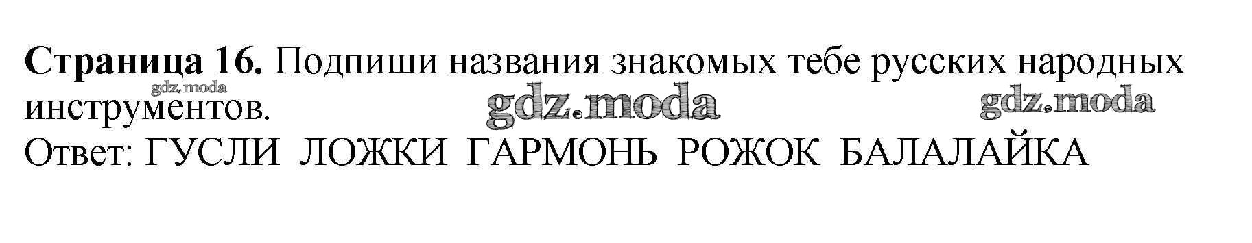 ГДЗ решение к заданию № 16 Музыка 1 класс рабочая тетрадь Критская Е.Д. Просвещение 2018 ФГОС бесплатно на гдз.мода!