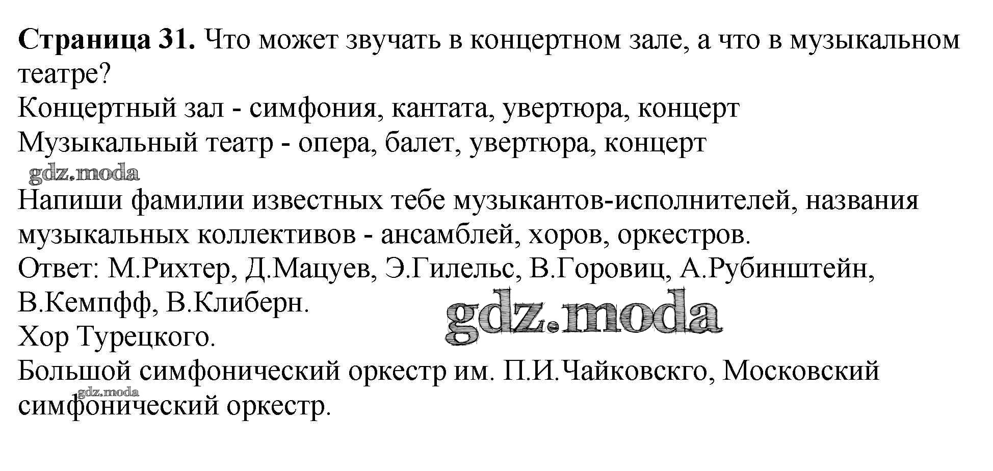 ОТВЕТ на задание № 31 Рабочая тетрадь по Музыке 1 класс Критская Школа России, Перспектива
