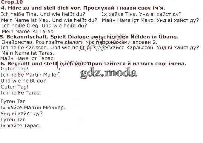 ГДЗ решение к заданию № 10 Немецкий язык 1 класс Сотникова Ранок 2018 бесплатно на гдз.мода!