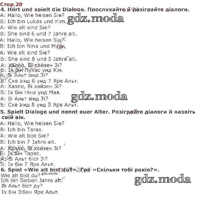 ГДЗ решение к заданию № 20 Немецкий язык 1 класс Сотникова Ранок 2018 бесплатно на гдз.мода!
