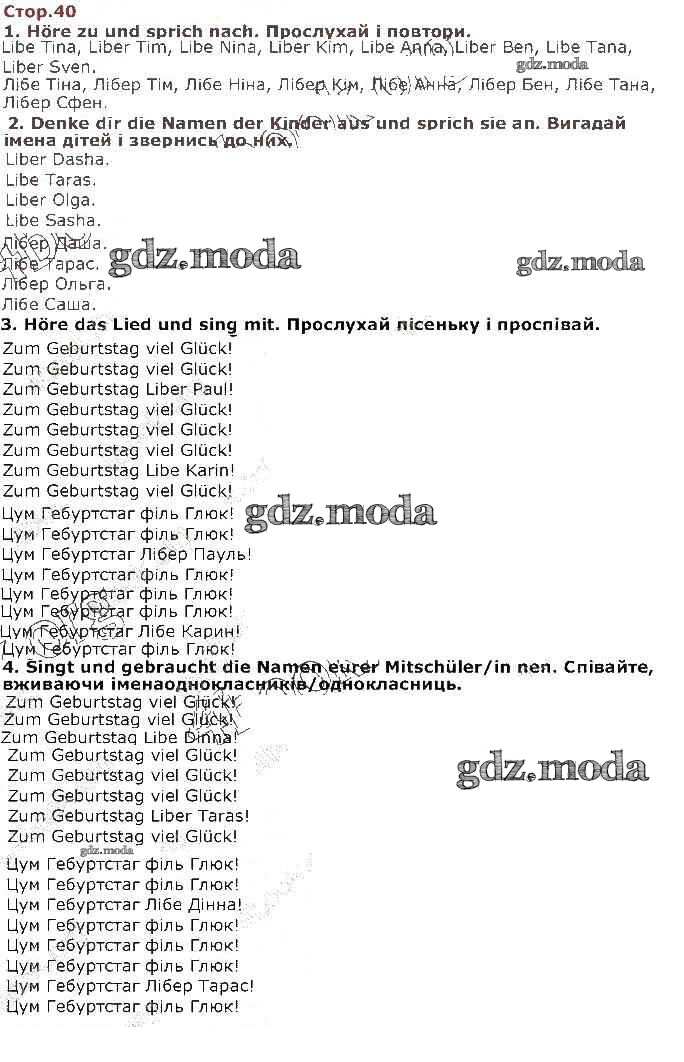 ГДЗ решение к заданию № 40 Немецкий язык 1 класс Сотникова Ранок 2018 бесплатно на гдз.мода!