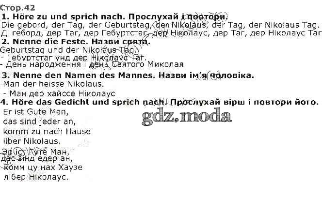 ГДЗ решение к заданию № 42 Немецкий язык 1 класс Сотникова Ранок 2018 бесплатно на гдз.мода!