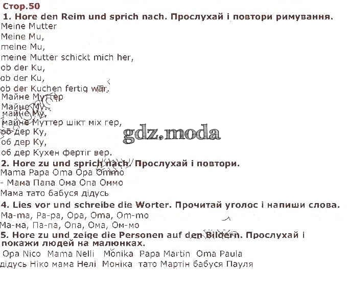 ГДЗ решение к заданию № 50 Немецкий язык 1 класс Сотникова Ранок 2018 бесплатно на гдз.мода!