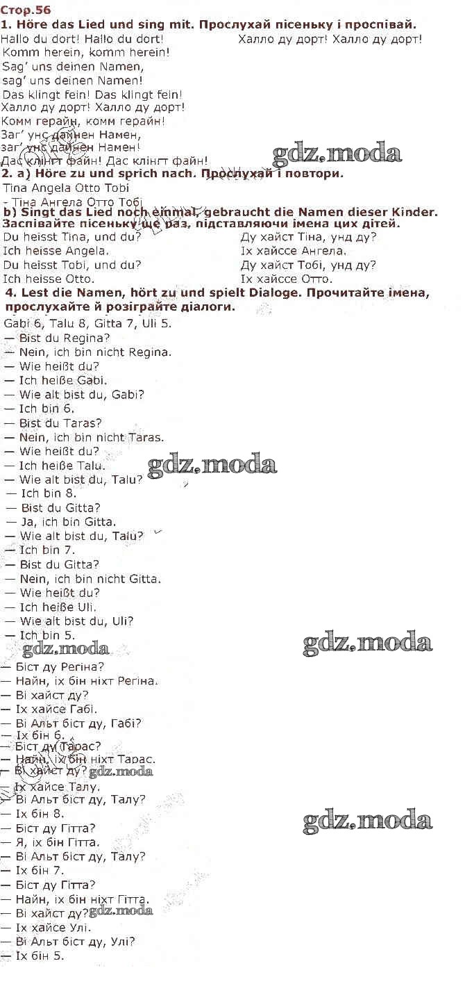 ГДЗ решение к заданию № 56 Немецкий язык 1 класс Сотникова Ранок 2018 бесплатно на гдз.мода!