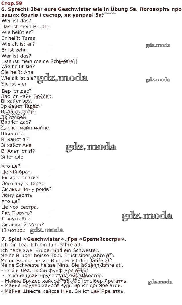 ГДЗ решение к заданию № 59 Немецкий язык 1 класс Сотникова Ранок 2018 бесплатно на гдз.мода!