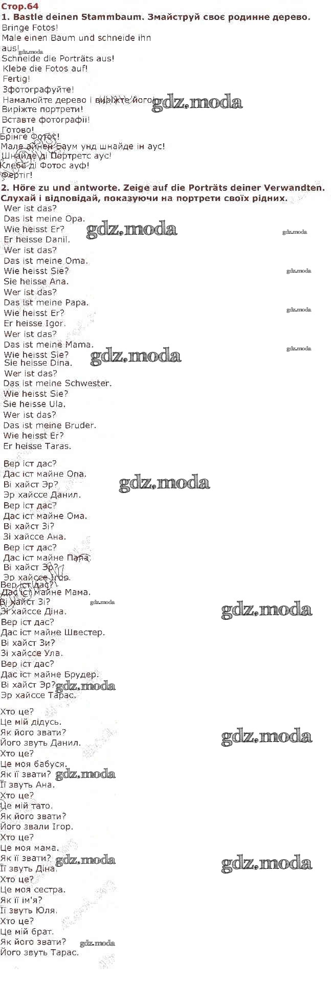 ГДЗ решение к заданию № 64 Немецкий язык 1 класс Сотникова Ранок 2018 бесплатно на гдз.мода!