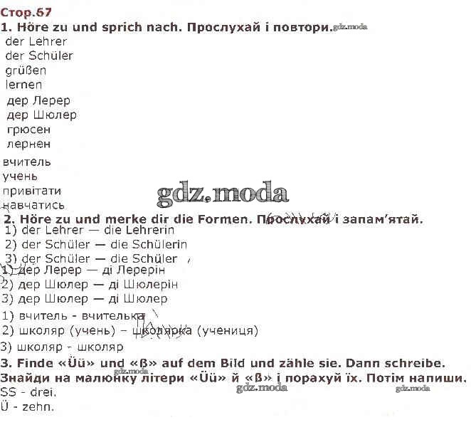 ГДЗ решение к заданию № 67 Немецкий язык 1 класс Сотникова Ранок 2018 бесплатно на гдз.мода!