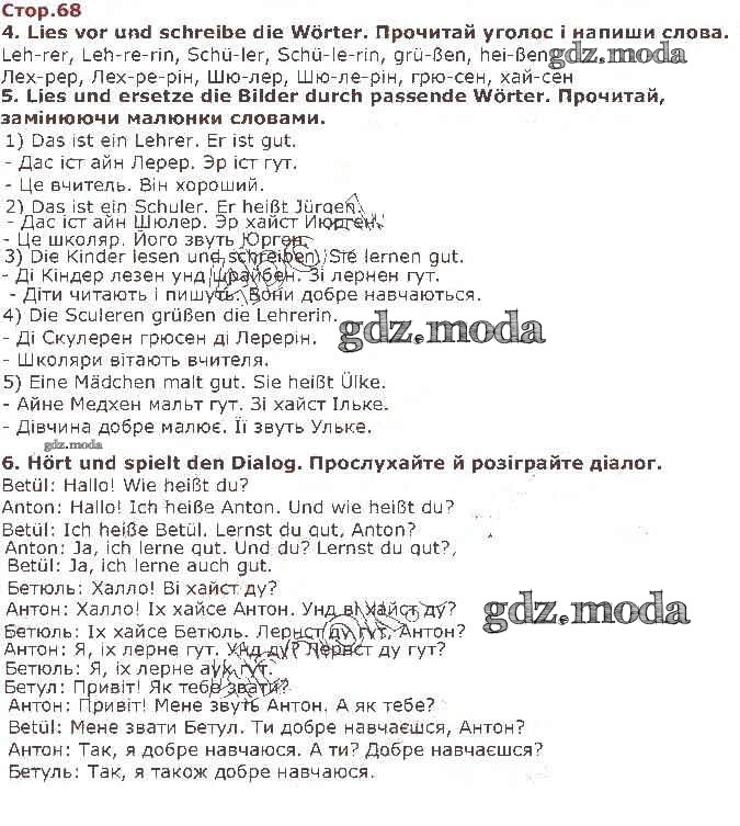 ГДЗ решение к заданию № 68 Немецкий язык 1 класс Сотникова Ранок 2018 бесплатно на гдз.мода!