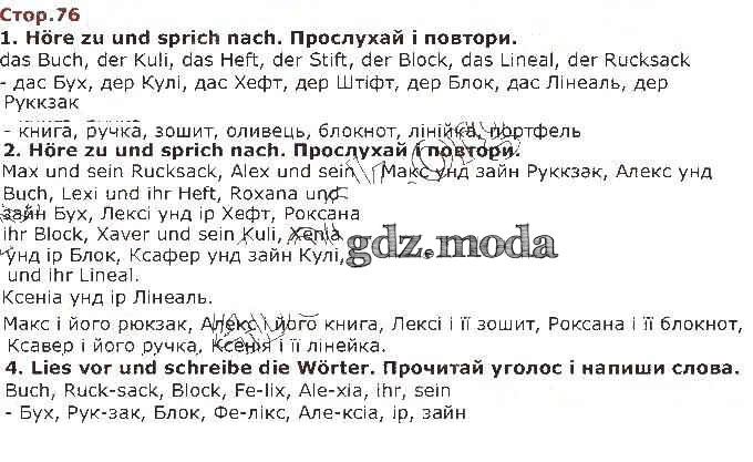 ГДЗ решение к заданию № 76 Немецкий язык 1 класс Сотникова Ранок 2018 бесплатно на гдз.мода!