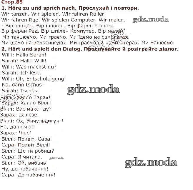 ГДЗ решение к заданию № 85 Немецкий язык 1 класс Сотникова Ранок 2018 бесплатно на гдз.мода!