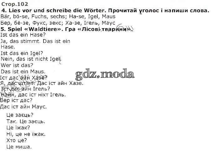 ГДЗ решение к заданию № 102 Немецкий язык 1 класс Сотникова Ранок 2018 бесплатно на гдз.мода!