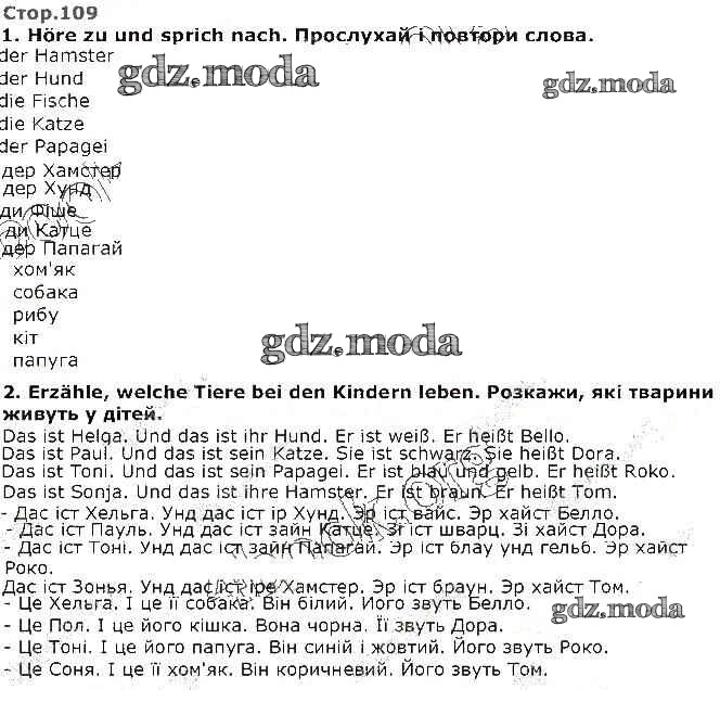 ГДЗ решение к заданию № 109 Немецкий язык 1 класс Сотникова Ранок 2018 бесплатно на гдз.мода!