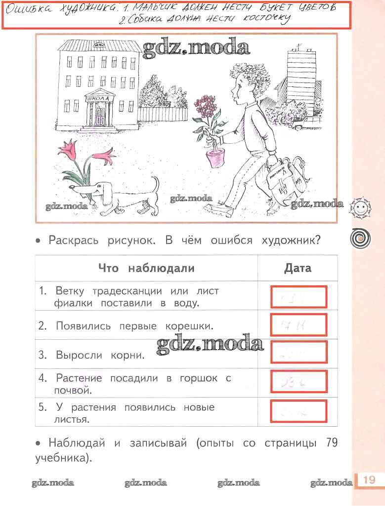 ГДЗ решение к заданию № 19 Окружающий мир 1 класс рабочая тетрадь Ивченкова Г.Г. (к уч. Ивченковой) Дрофа 2018 Часть 1, Часть 2 ФГОС бесплатно на гдз.мода!