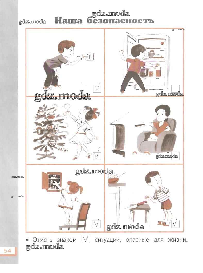 ГДЗ решение к заданию № 54 Окружающий мир 1 класс рабочая тетрадь Ивченкова Г.Г. (к уч. Ивченковой) Дрофа 2018 Часть 1, Часть 2 ФГОС бесплатно на гдз.мода!
