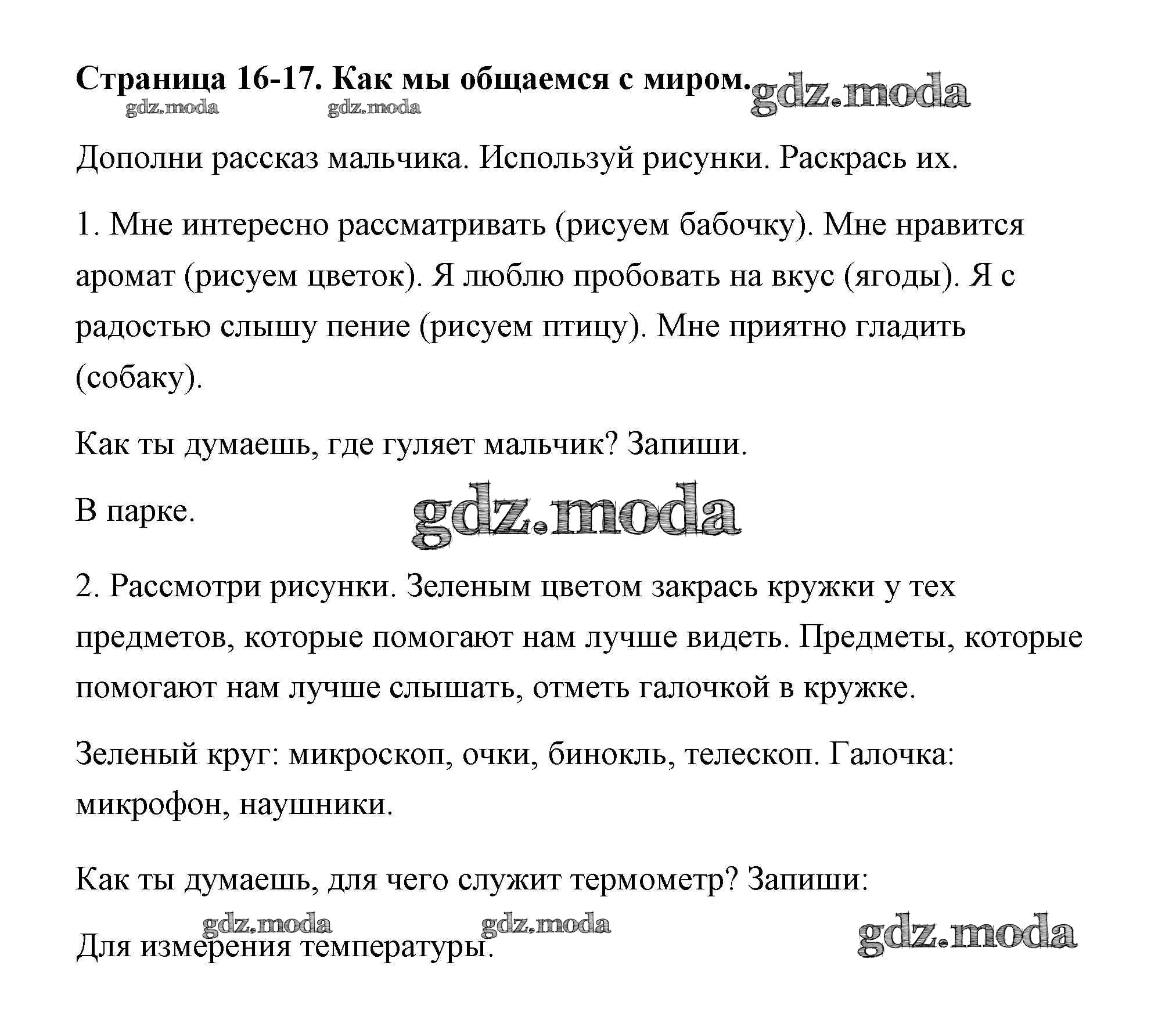 ГДЗ решение к заданию № 16-17 Окружающий мир 1 класс Плешаков рабочая тетрадь Просвещение 2016 Часть 1, Часть 2 ФГОС бесплатно на гдз.мода!
