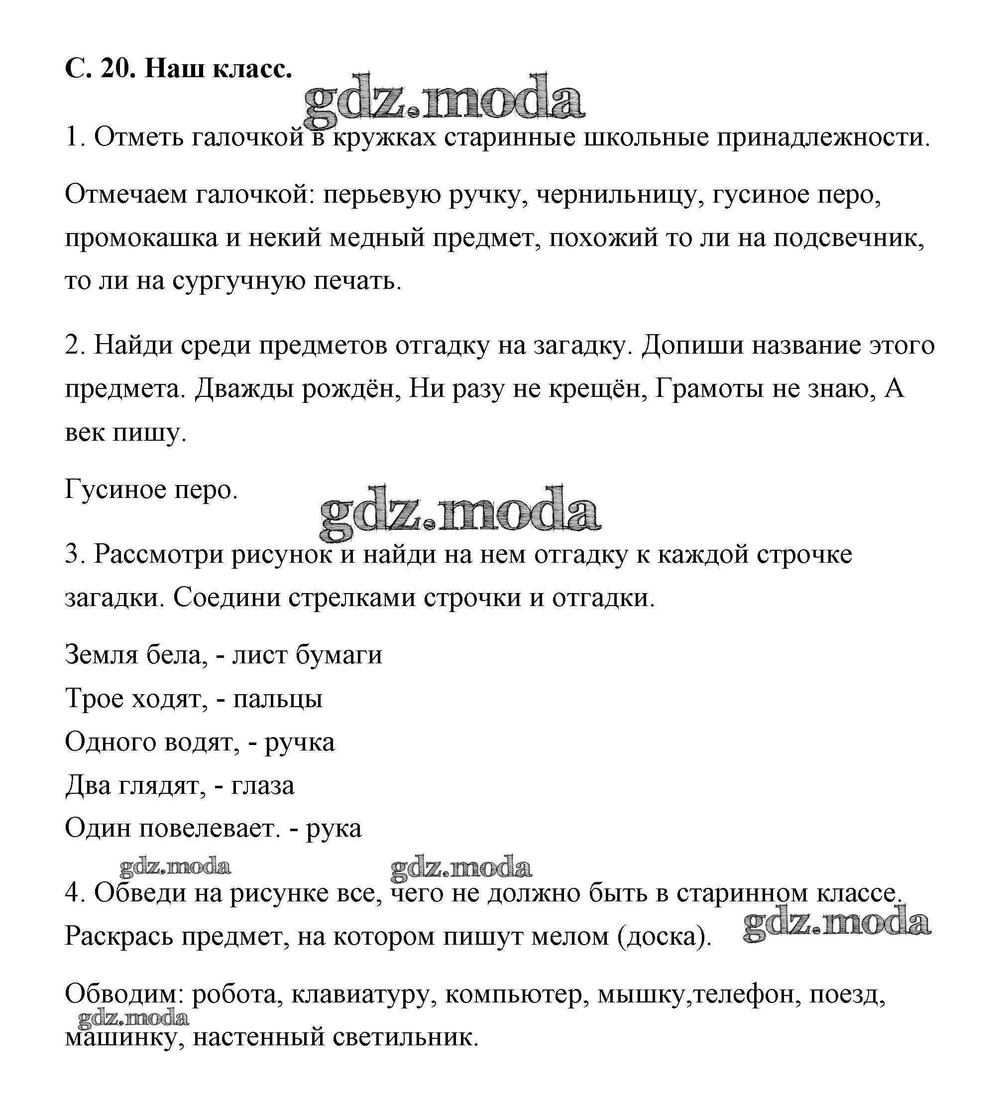 ГДЗ решение к заданию № 20 Окружающий мир 1 класс Плешаков рабочая тетрадь Просвещение 2016 Часть 1, Часть 2 ФГОС бесплатно на гдз.мода!