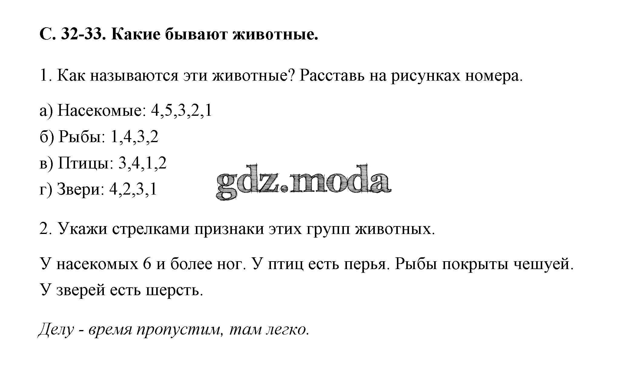 ГДЗ решение к заданию № 32-33 Окружающий мир 1 класс Плешаков рабочая тетрадь Просвещение 2016 Часть 1, Часть 2 ФГОС бесплатно на гдз.мода!