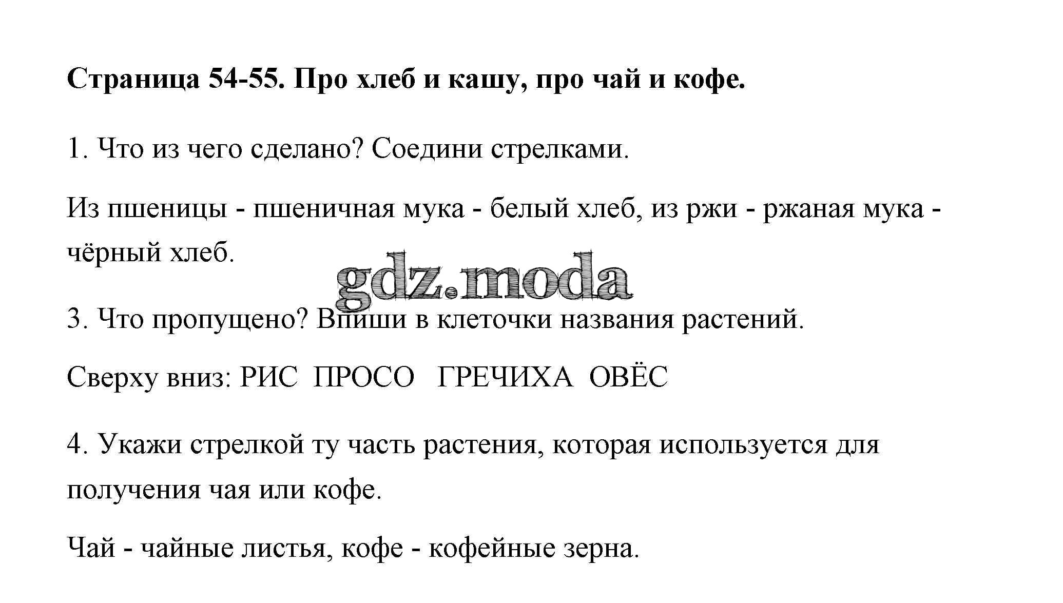 ГДЗ решение к заданию № 54-55 Окружающий мир 1 класс Плешаков рабочая тетрадь Просвещение 2016 Часть 1, Часть 2 ФГОС бесплатно на гдз.мода!