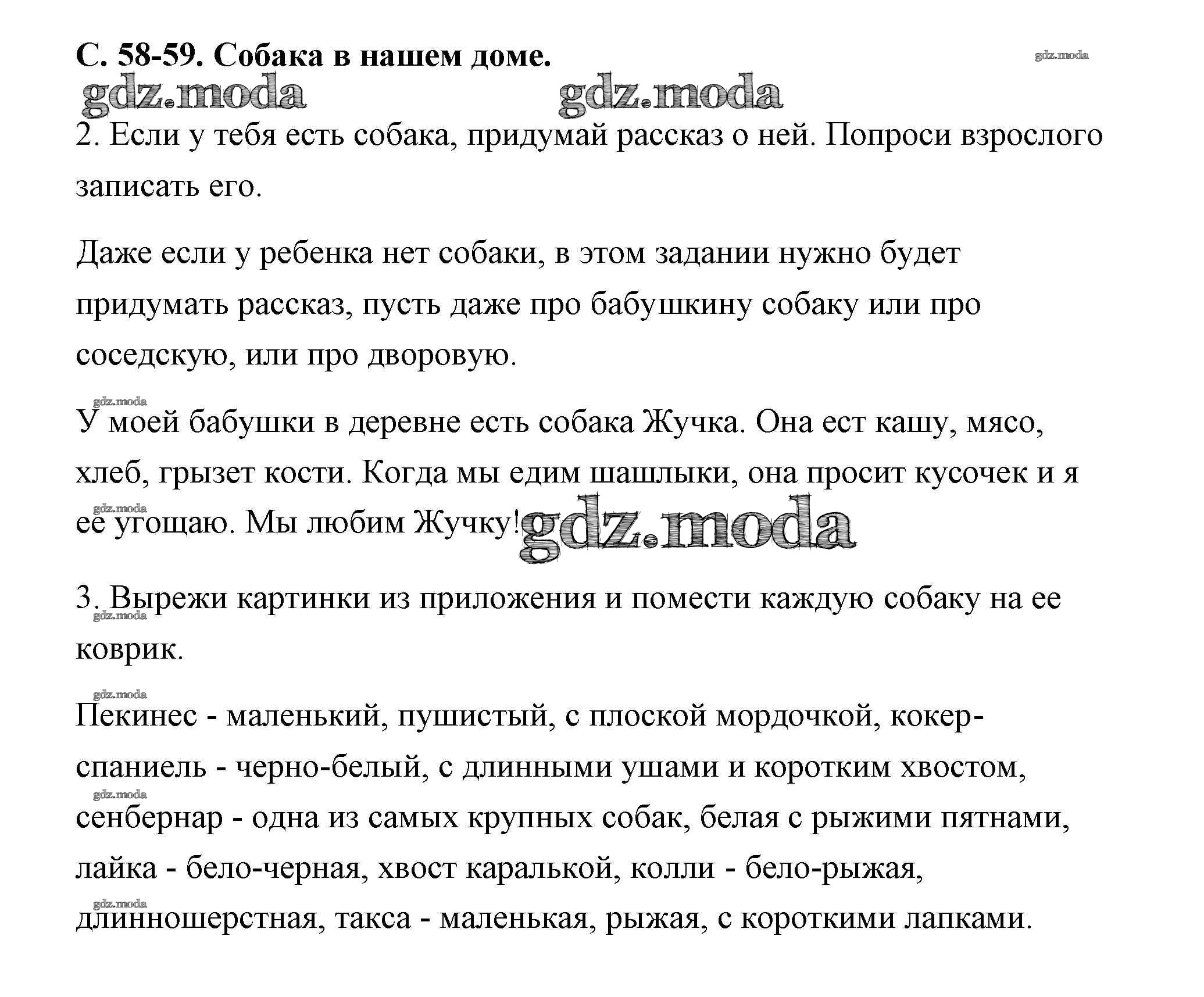 ГДЗ решение к заданию № 58-59 Окружающий мир 1 класс Плешаков рабочая тетрадь Просвещение 2016 Часть 1, Часть 2 ФГОС бесплатно на гдз.мода!