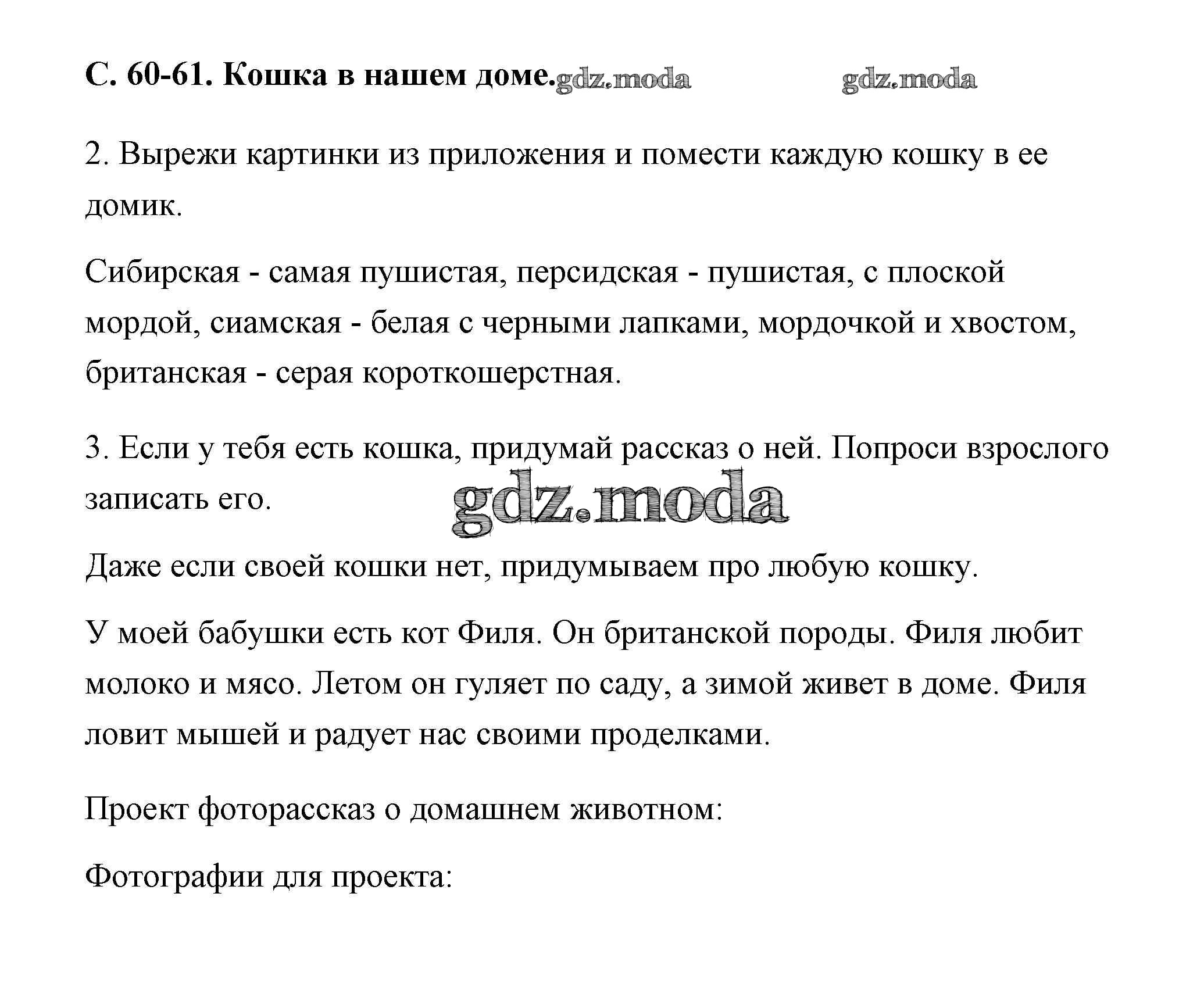 ГДЗ решение к заданию № 60-61 Окружающий мир 1 класс Плешаков рабочая тетрадь Просвещение 2016 Часть 1, Часть 2 ФГОС бесплатно на гдз.мода!