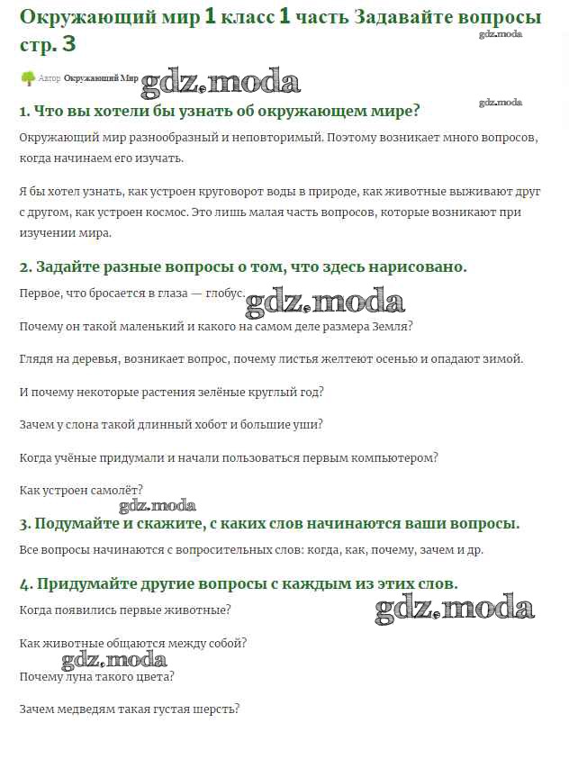 ОТВЕТ на задание № 3 Учебник по Окружающему миру 1 класс Плешаков Школа России