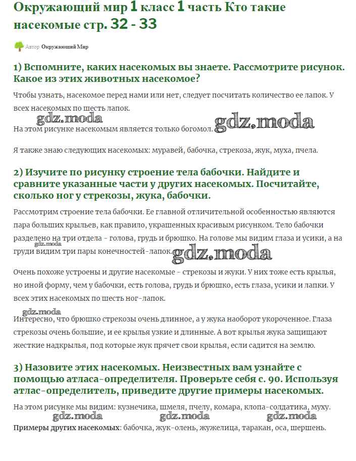 ОТВЕТ на задание № 32-33 Учебник по Окружающему миру 1 класс Плешаков Школа России