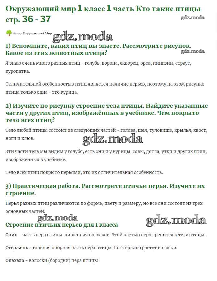 ОТВЕТ на задание № 36-37 Учебник по Окружающему миру 1 класс Плешаков Школа России