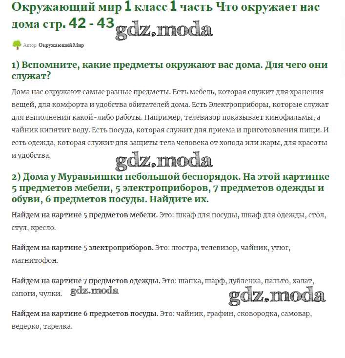 ОТВЕТ на задание № 42-43 Учебник по Окружающему миру 1 класс Плешаков Школа России
