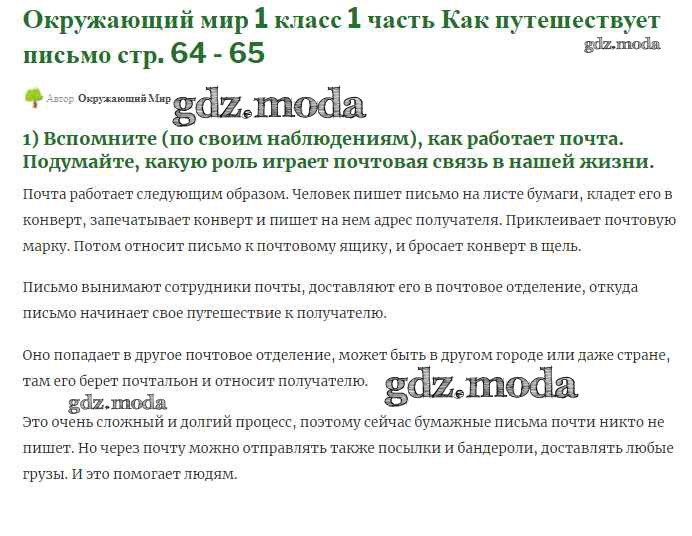 ОТВЕТ на задание № 64-65 Учебник по Окружающему миру 1 класс Плешаков Школа России