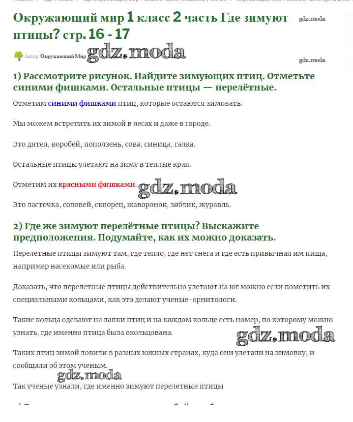ОТВЕТ на задание № 16-17 Учебник по Окружающему миру 1 класс Плешаков Школа России